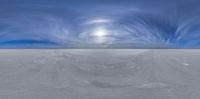 An endless salt flat basking in sunlight, surrounded by vast open spaces and a clear sky. A tranquil desert landscape with salt lakes reflecting the sun's glow, creating serene views in a skydome setting.