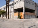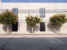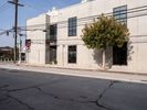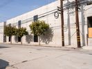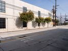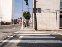 Asphalt road in Los Angeles, California under a clear sky. Urban residential area with concrete walls captures a typical day in the city, showcasing the pedestrian crossing and urban profile.