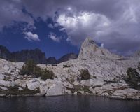 A scenic coastal road winds through the wilderness, with a partly cloudy sky above. Majestic mountains and a rocky cliff contrast with the open spaces and serene lakes. A breathtaking landscape to explore off-road.