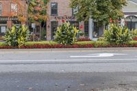 there is an image of a town street in the fall season that appears to be a busy, crowded, and attractive place