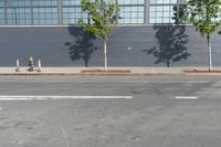 This stock photo features two fire hydrants sitting in front of a brick wall with trees growing between them, located at the curb of a residential area in New York City. The image captures the urban atmosphere of the bustling city, with the dawn light illuminating the scene. The fire hydrants are positioned on the road surface, surrounded by asphalt and parked vehicles. The brick wall and structure in the background add a touch of architectural interest, while the trees and vegetation provide a sense of greenery in the public space. A hard shadow is cast on the wall, highlighting the profile of the fire hydrants. This photo perfectly represents the urban landscape and infrastructure of New York City.