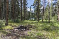 This stock photo shows a group of firepits nestled in a grassy area near the woods with trees in Frisco, Colorado. The image captures a beautiful day in the scenic landscape of the Colorado mountains. The open space and wilderness of Officers Gulch provide a perfect setting for recreational activities. The grass surface and natural environment blend harmoniously with the northern hardwood forest, creating an idyllic atmosphere for outdoor gatherings and relaxation.