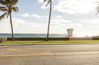 This image captures the vibrant atmosphere of coastal Florida, USA. The photo showcases the stunning architecture and infrastructure found along the residential roads. The golden sunlight illuminates the palm trees and woody plants that line the beachfront. The clear blue ocean and sky blend seamlessly with the sunny weather, creating a perfect vacation destination. The road surface, made of asphalt, is flanked by curbs and leads to the beautiful ocean drive. This photo encapsulates the essence of a sunny day in Florida, with its warm sun, sandy beaches, and picturesque coastal scenery.