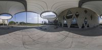 The Formosa Arts Center in Kaohsuing, Taiwan. This urban masterpiece features a large circular building with benches, surrounded by glass walls and contemporary urban design. The hard shadows create a striking contrast against the wood floors. A symbol of modern urban life in Asia.