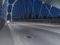 This is an image of a cityscape in Frankfurt, Germany at night. The architecture is modern and urban, with illuminated roads and bridges. The clear sky adds to the ambiance with a backdrop of artificial light. The infrastructure includes highways and lanes, with a prominent fixed link bridge. This photo captures the essence of Frankfurt's vibrant and dynamic atmosphere at night.