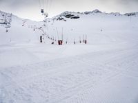 A gloomy winter day in the French Alps. Snow-covered mountains create a picturesque landscape. The grey sky adds to the gloom, but the open space offers ample terrain for winter sports and recreation. A popular tourist attraction in Europe.