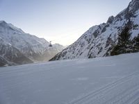 a skier goes down an alpine mountain slope and looks back toward the gondola lift