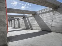 A modern concrete bridge in Tenerife, Spain. The futuristic architecture features clean lines and surfaces. Clear sky casts shadows on the bridge, highlighting its unique design. This architectural marvel stands as a symbol of Europe's innovative approach to construction.
