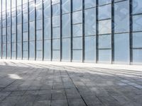 A modern architectural marvel in the city of Shenzhen, China. The futuristic glass walls and concrete lines create a stunning facade. The urban landscape is complemented by the clear blue sky and clouds.