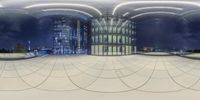 a night scene of a futuristic city with a reflection in it's center bowl