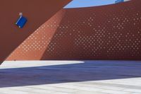 A futuristic cityscape in Suzhou, with modern architecture dominating the skyline. Clear blue skies enhance the orange metal walls and structural elements. Open spaces contrast with the urban design and city life. An architectural visualization of a vibrant city.