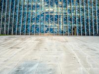 This stock photo showcases a modern architectural structure in Shenzhen, Guangdong, China. The building features a low-profile design with concrete walls and glass windows, allowing plenty of natural light to fill the interior space. The open space in front is adorned with lush green grass, offering a refreshing touch to the urban environment. The structure is characterized by clean lines and a sleek glass wall that provides a transparent view of the surroundings. The clear blue sky above adds to the overall aesthetic appeal. This image captures the essence of modern architecture and showcases the vibrant city of Shenzhen in Asia.