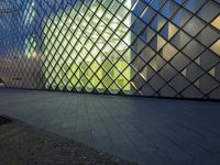 A modern architectural marvel in Berlin, Germany. The building's square patterns and reflective windows create a striking visual from dawn till dusk. The iron chain-link fence adds a unique design element to the open space in front. Welcome to Futurium!