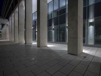 A modern architectural marvel in the heart of Berlin, Germany. The stunning facade of this building is illuminated by artificial light, showcasing the city's vibrant nightlife. Next to it, a room with concrete floors and windows adds an urban touch to the scene.
