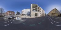 A serene morning in Berlin, Germany. Snow-covered cobblestone streets lined with modern residential buildings. Clear sky illuminates the city's architectural diversity. A peaceful urban setting in the heart of Europe.