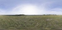 Sunny day in Brandenburg, Germany, with the sun visible in the clear sky. Vast open spaces of green grass and lush greenery make up the scenic landscape. Nature at its finest under the German sun.