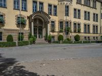 large yellow building with some plants and bushes in front of it for decoration or entertainment
