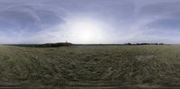 A sunny day in Brandenburg, Germany. The lush landscape features rolling hills and open spaces, with clouds dotting the sky. A picturesque rural valley with vast grass surfaces invites exploration.