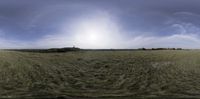 A sunny day in Brandenburg, Germany, showcasing a lush landscape with rolling hills and open spaces. Fluffy clouds drift over the rural valley, highlighting the beauty of the grassy surfaces.