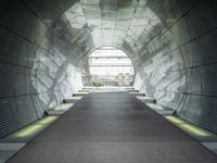 A modern architecture marvel in the heart of Berlin's business district. Straight down the road view offers a unique perspective on the city's infrastructure. Glass walkways reflect the symmetrical lines and motion blur of passing subway trains.