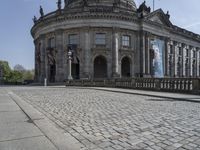 This is an image of the beautiful city of Berlin, Germany. The photo showcases the architecture and urban design with its classic buildings and cobblestone roads. In the foreground, there is a clear sky, highlighting the domes and facades of prominent landmarks such as the Bode Museum. This museum is a popular tourist attraction and showcases the rich history and culture of Berlin. The image captures the vibrancy of city life in Europe, with its monuments, bridges, and official residences. It is a must-visit destination for any tourist interested in history and architecture in Europe.