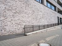 This is an image of a modern cityscape in Bremen, Germany. The urban architecture features buildings with brick walls and flooring. The city life is evident with busy roads, fences, and curbs. The parallel lines of the buildings and roads create a sense of modern urban design. This photo represents a day in Europe, showcasing the combination of traditional brickwork and modern architecture. The surface of the roads and buildings form a cohesive rectangle that adds to the urban aesthetic.