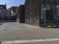 A person walking on a city sidewalk in Germany, surrounded by modern architecture. The urban design blends with the residential area, while the open spaces provide a refreshing break from the hustle and bustle. A perfect day in Europe.
