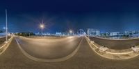 the lights are shining brightly over the empty street as if in this lens you need a wide angle
