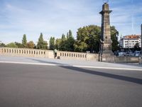 This image showcases the classic architecture and infrastructure of Berlin, Germany. The clear sky and sunlight highlight the city's buildings, roads, and bridges. The urban landscape is adorned with trees and vegetation, creating a pleasant public space. The city's unique mix of classic and modern architecture is on display, with facades, walls, and structures adding to the charm. A fixed link and armco barriers enhance safety and guide traffic. This is a typical day in Berlin, where tourists can explore museums and enjoy the European city's rich history and culture.