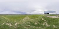 A curved building nestled on a grassy hill in Berlin, Germany. The architectural masterpiece blends seamlessly with the natural environment. The open space and lush vegetation create a serene landscape. A perfect blend of urban design and rural charm.
