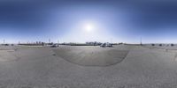 A modern cityscape in Germany, featuring high-rise buildings and a straight road leading to the coastal shore. Calm waters reflect the clear sky and urban design. A perfect day in Europe.