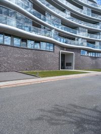 A modern architecture residential building in Bremen, Germany. The brick facade and large windows create a dynamic look. The building stands tall amidst the urban design and city life of Bremen.