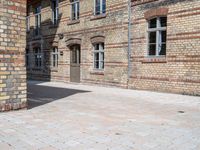 A classic architectural courtyard in Berlin, Germany. The brick walls and warehouse design reflect the city's urban charm. The clear sky and well-maintained surfaces create a picturesque scene. Explore the city's rich history at museums and hotels.