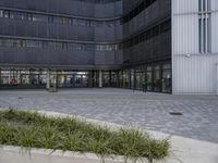 A modern office building in Berlin, Germany, with a sleek concrete facade. The building is surrounded by open green spaces and lined with trees. It is a prime example of urban design in the bustling business district of Europe's vibrant city.