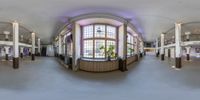 A fisheye view of a large building in Berlin, Germany. The architecture is a mix of concrete and glass, with a straight road leading to the entrance. The high-rise building offers a panoramic view of the city. A contemporary urban design in the heart of Europe.