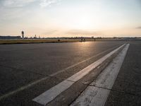 This is an image of a city landscape in Berlin, Germany. The photo shows an asphalt road leading to an open space with a lake in the background. The clear sky and sunlight create a bright and sunny atmosphere. The trees add a touch of greenery to the urban design of the city. This photo reflects the vibrant city life in Berlin and showcases the beautiful urban and natural landscape. The airport and airfield in the distance highlight the city's importance as a transportation hub in Europe.