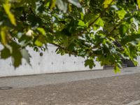 Modern architecture in Berlin, Germany. A concrete wall stands in an open space with clear skies. Gravel and dirt surface contrast with urban surroundings. A blend of modern and traditional European architecture.