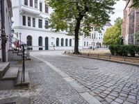 This is an image of a classic architecture town square in Berlin, Germany. The photo showcases the beautiful architecture of the buildings and the cobblestone walkway in the town square. The facade of the buildings features intricate windows and walls. The image also captures the urban environment of the city with roads and trees lining the streets. This is a perfect representation of the charm and beauty of Berlin. Visitors can explore the architecture, walkways, and public spaces in this historic European city.