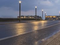A stunning view of Berlin at dawn, with its modern architecture reflecting on the wet asphalt. The cityscape comes alive at night, illuminated by the glow of street lights. This vibrant European business district is a true work of art.