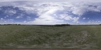 A sunny day in Brandenburg, Germany, showcasing a lush green landscape with rolling hills and open spaces. Clouds drift across the sky in this picturesque rural park setting.