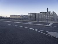 This image shows the modern architecture of Berlin, Germany at dawn. The cityscape features a road lined with buildings and a fence, with an airport in the background. The clear sky above contrasts with the road surface, which is in shadow. The city's metropolitan area is highlighted by the sleek designs and lines of the buildings, showcasing Berlin's urban design. This photo captures the essence of a European city waking up to a new day. Experience the beauty and infrastructure of Berlin in this stunning image.