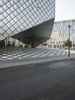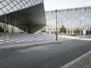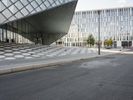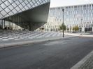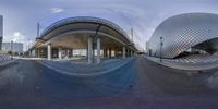 A fisheye lens captures the stunning architecture of Berlin, Germany. The modern and futuristic design of buildings, with glass walls and steel structures, create a metropolitan cityscape. Clear skies and contrails add to the urban charm of Europe's bustling capital.