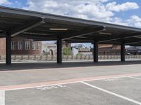 A view of Berlin, Germany showcasing a blend of modern and classic architecture. Clear skies create a beautiful backdrop for the city's concrete streets and parking lots. Lush vegetation contrasts with metal beams and urban infrastructure.