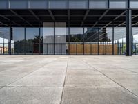 This is an image of a modern glass-covered building in the financial district of Berlin, Germany. The glass wall allows for natural light to fill the open space inside, illuminating the concrete flooring. The building's profile stands tall against the city skyline, representing the architecture and urban design of Europe. The business district's bustling atmosphere is captured in this daytime photo. In the background, the clear blue sky reflects off the glass facade. This image symbolizes the fusion of business, modern architecture, and city life in Berlin.