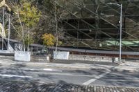 A modern office building in Ottawa's business district. Futuristic architecture with glass walls and hard shadows. The urban design features a grey tar road surface with small bricks near the entry. City life at its finest.