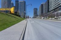 This image showcases the modern architectural design of high-rise residential buildings in Toronto, Ontario, Canada. The city's urban infrastructure is highlighted with the network of roads and thoroughfares lined with street lights. The glass walls of the buildings reflect the cloudy sky, adding to the city's aesthetic appeal. Suburban areas can be seen with driveways leading to residential entries. The image captures the essence of city life in Canada, with its blend of sleek architecture, urban design, and lush vegetation. Explore the vibrant cityscape of Toronto with this captivating photo.