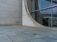 A modern glass wall in the city of Berlin. The reflection of the clouds on the glass surface adds a touch of urban design. The concrete pavers enhance the architectural appeal of this European city.