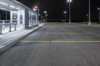 A view of a modern architectural marvel in Toronto city at night. The glass walls and artificial lights create a stunning contrast against the clear sky. A road with a smooth asphalt surface leads to a suburban pathway and a parking deck.