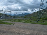 Gloomy day in Colorado, with a grey sky and a landscape of construction and power plants. Roads made of dirt, gravel, and sand create a rugged and natural atmosphere.
