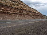 A gloomy day in Utah showcases a grey sky looming over the asphalt road winding through the forest. Majestic mountains and lush trees blend with the natural landscape, creating a serene and captivating scene.